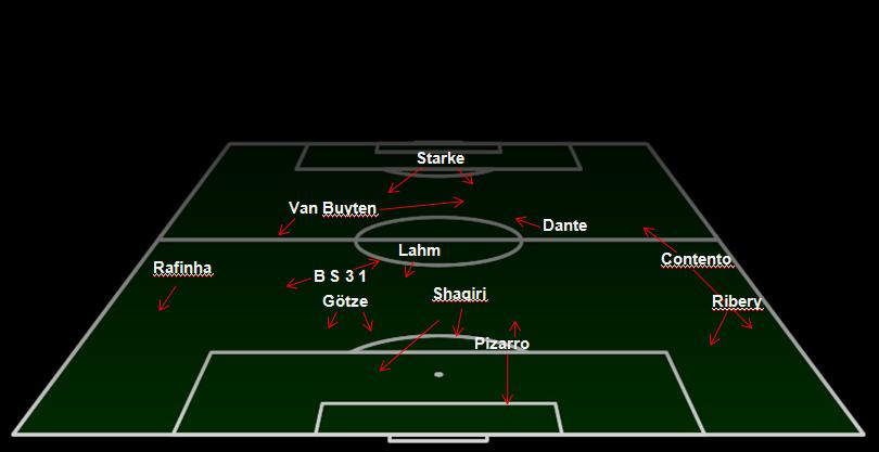 | Wechsel: | Lahm > < Thiago | 25. | Elyounoussi > < Modeste | 31. |