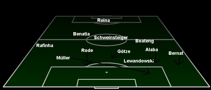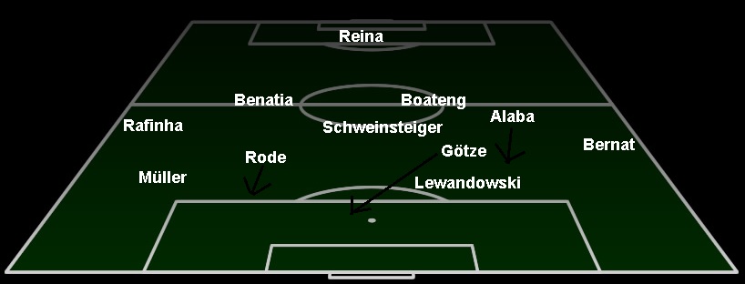 2-4-4 offensiv geändert wurde. Rafinha und Bernat mehr Aussen zwischen
