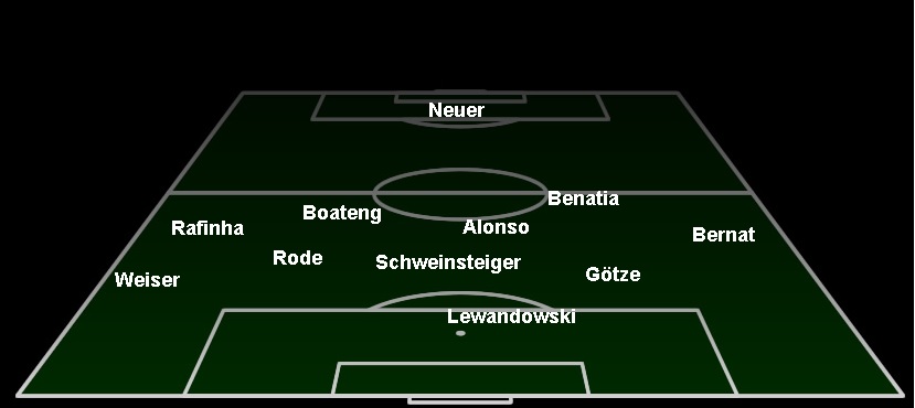 Rode und Schweinsteiger als Box-to-Box-Spieler, offensiv (Tor