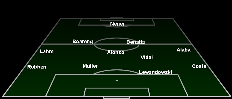zentralen 8er (Vidal), dann 6 offensiver Freigeister. Lewandowski als