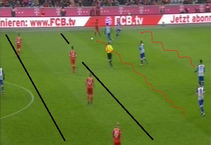in der Ballannahme hatte, weil der Gegner den jeweiligen Bayernspieler sofort