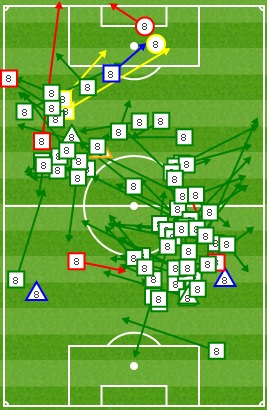 gegenüber sonst, wo er oft auf der linken 8er und etwas Zentrum sich