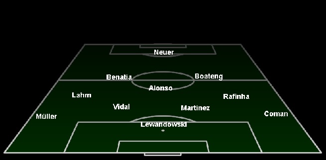| Müller und Vidal, wobei dann Ribery 6 Minuten nach Einwechselung trifft. Perfekt. | |||||||