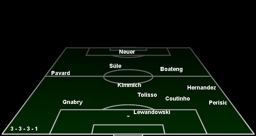 Hernandez (70% gew ZWK)). Kimmich und Tolisso als "Doppel-6" mit wenig
