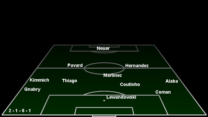 wählte Niko Kovac ein 4-1-4-1, mit Javi Martinez (bekam endlich wieder