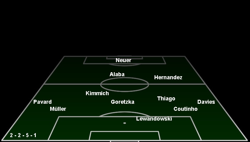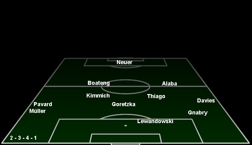 Erneut ließ Flick Coutinho auf der Bank und wählte zwei 8er mit Thiago und Goretzka, die defensiver gehen konnten. Also die Denkweise bei Flick erneut eher defensiv als offensive Kreativität. Zwar das Grundsystem 4-1-4-1, in der Denkweise eher vorsichtig ein 4-2-3-1. Eine Doppel-6 mit Thiago, was man auch im Spiel phasenweise erneut beobachten konnte. Wie die Spiele auch zuvor.