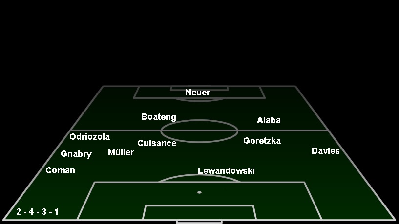 Im Angriff wurde es zu einem 2-4-3-1, was sehr rechtlastiig war. Coman