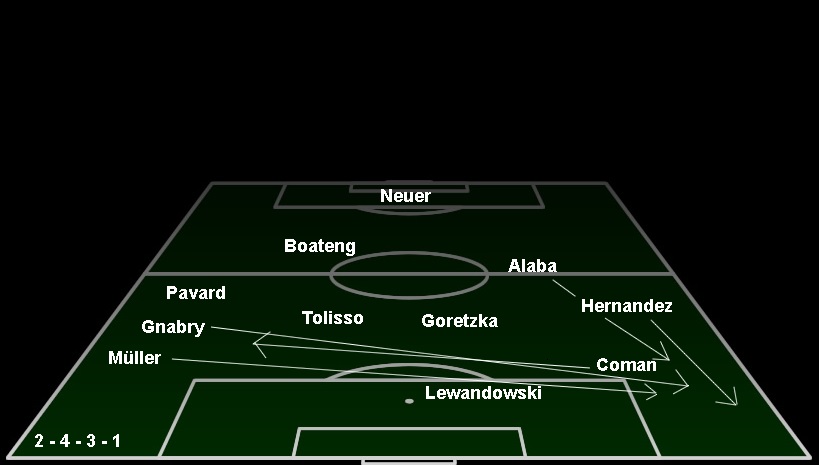| FC Bayern: | Süle > < Hernandez ( 58., Verletzung) | ||||